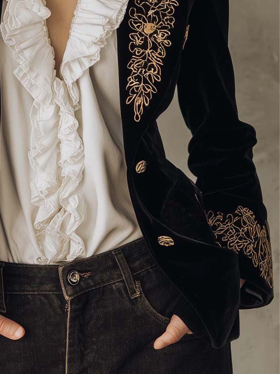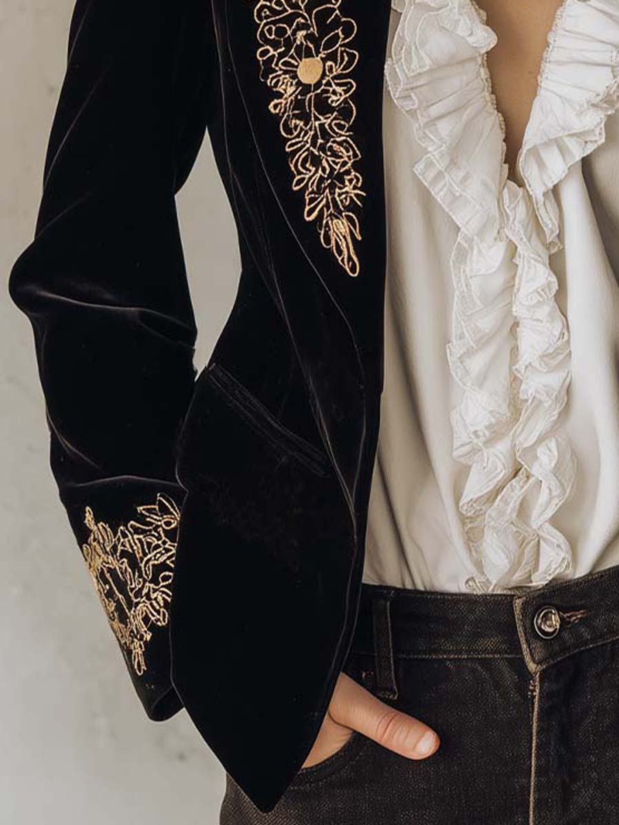 Sophisticated, regal, and irresistibly tactile — this Embroidered Velvet Blazer embodies timeless elegance with a modern allure.