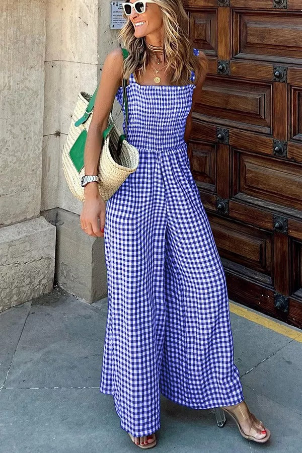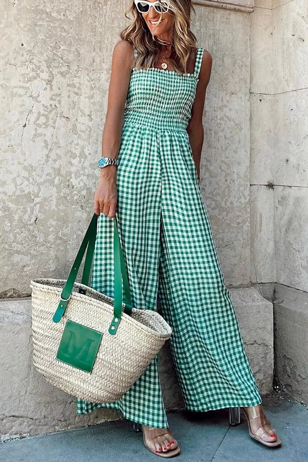 Envy Me Plaid Smocked Wide Leg Jumpsuit