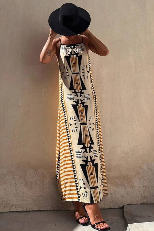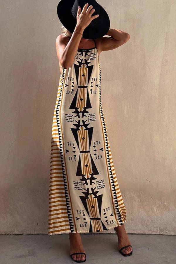 Ethnic Print Strappy Maxi Dress