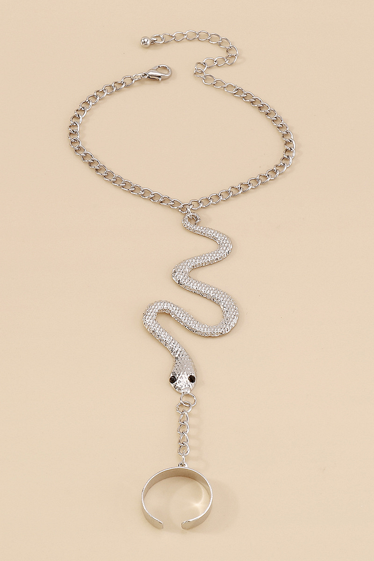 Fashionable Alloy Snake Shape Finger Linked Bracelet-Gold