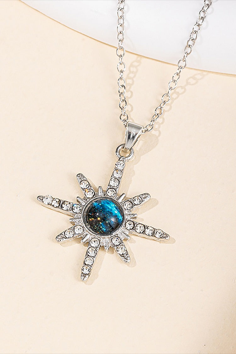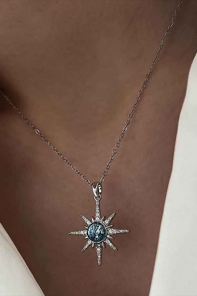 Fashionable Rhinestone Decor Geometric Star Pendant Alloy Necklace