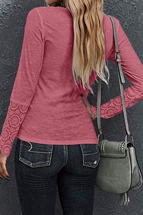 Flowers Round Neckline Long Sleeve Blouses