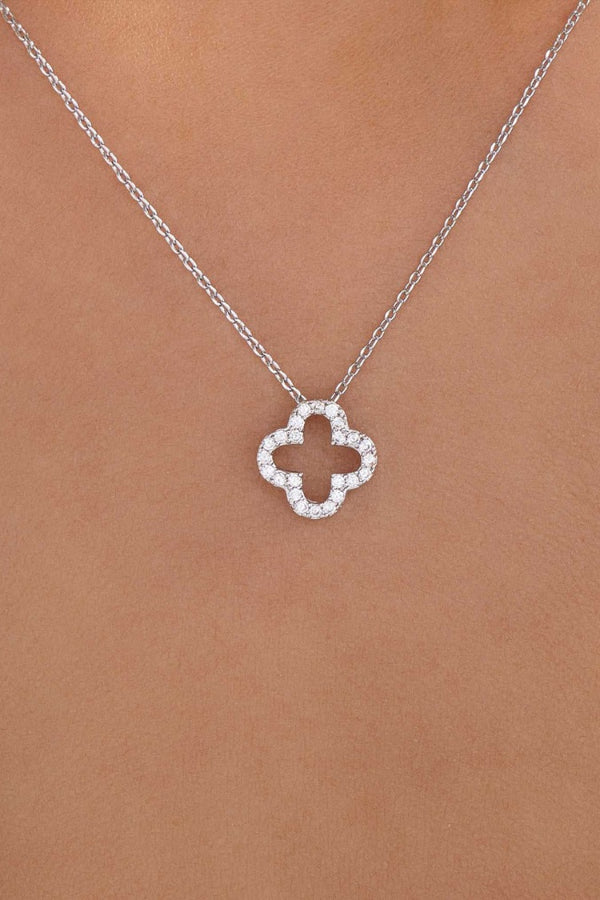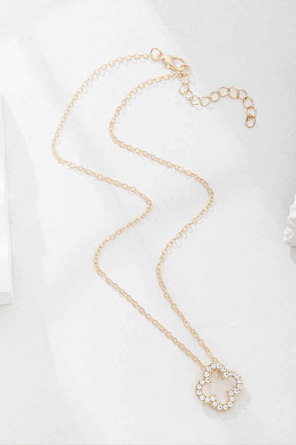Four-Leaf Clover Pendant Rhinestone Decor Alloy Necklace