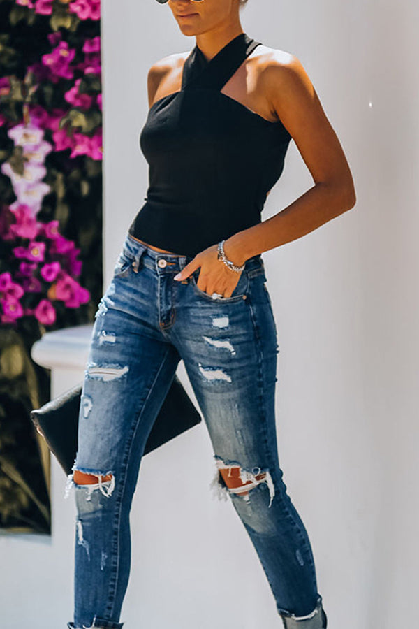 Halter Sleeveless Solid Tops