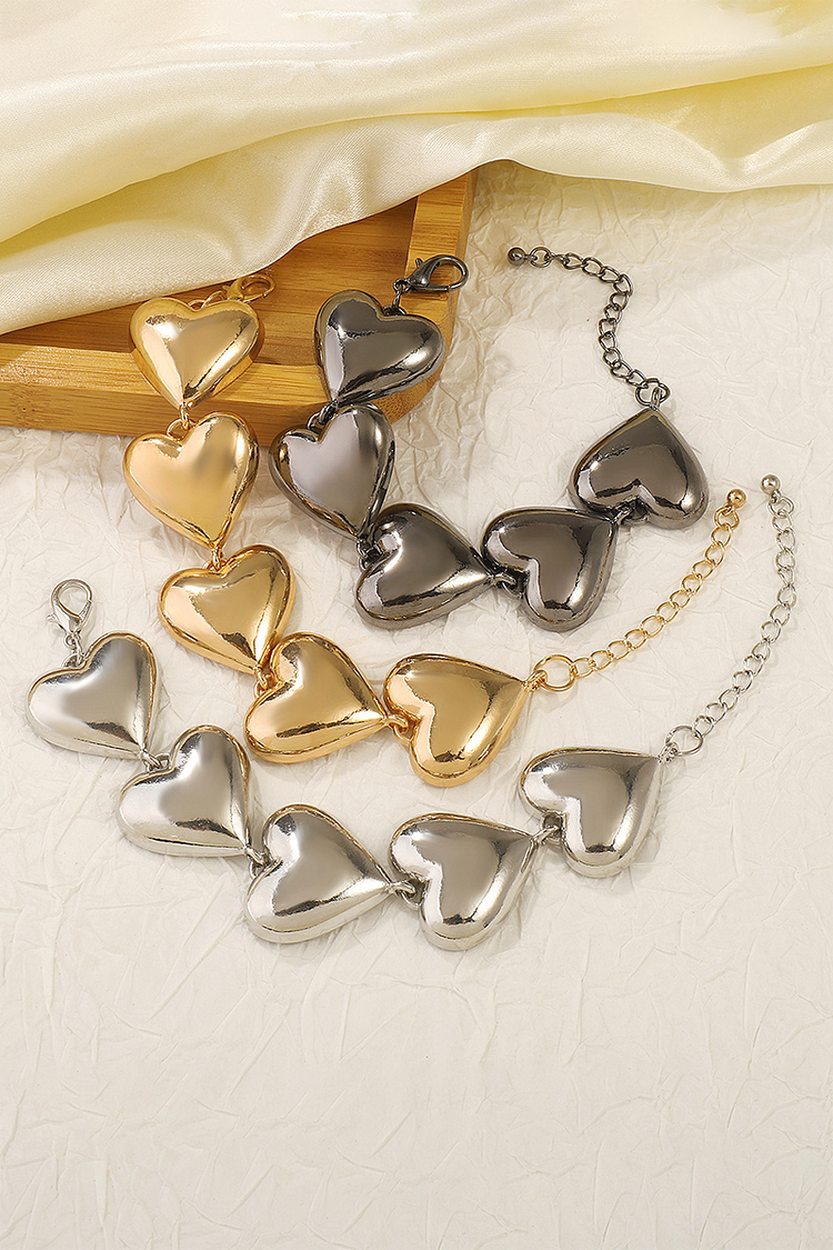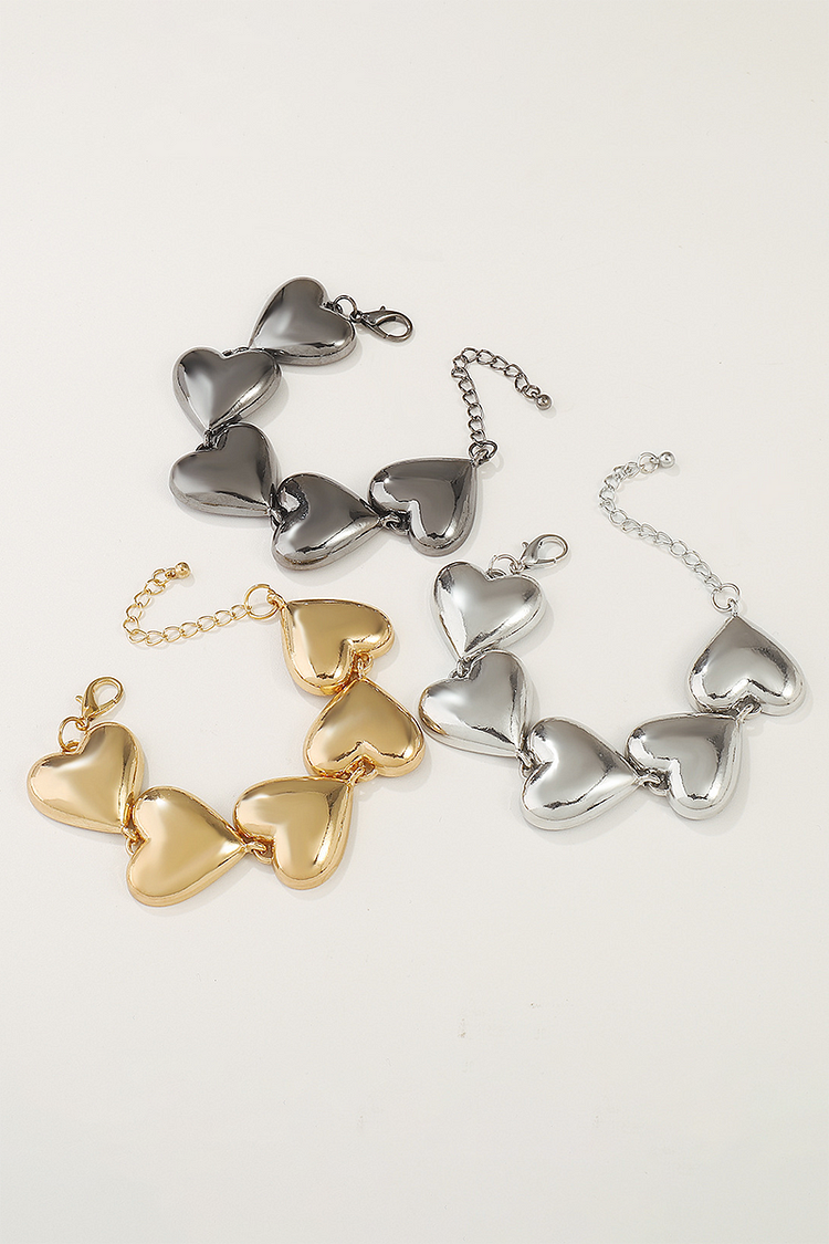 Heart-Shaped Alloy Fashionable Chain Bracelet-Gold