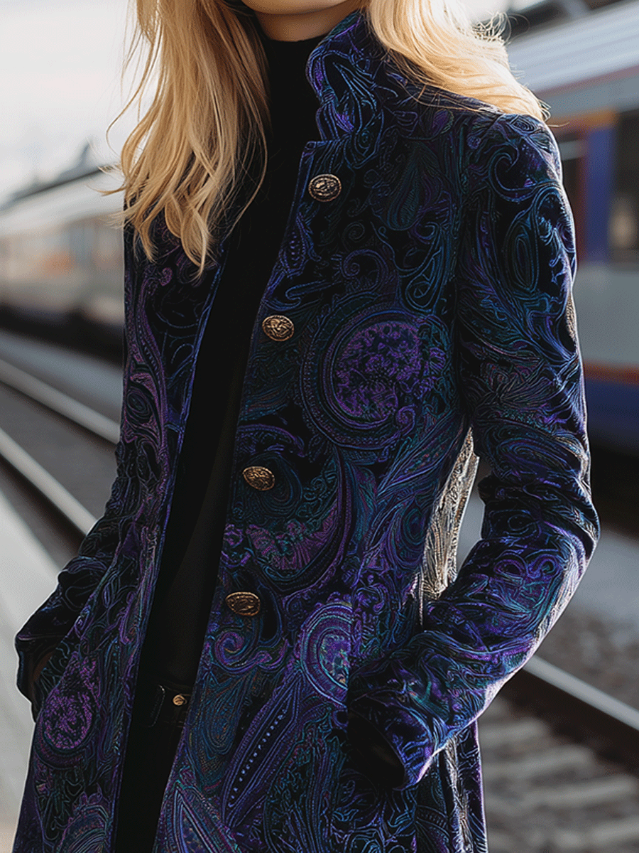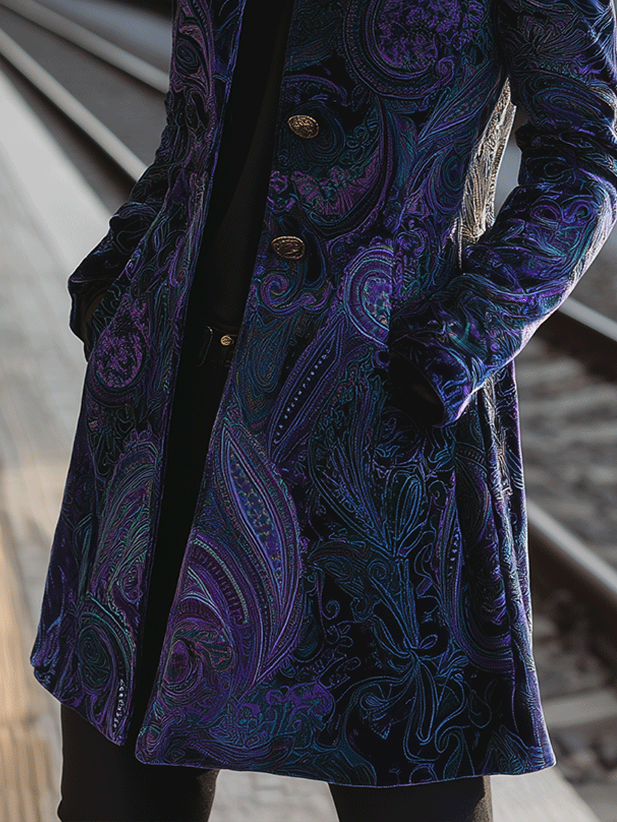 The Heritage Paisley Velvet Long Coat is a perfect addition to any wardrobe, combining timeless design with modern luxury. Its elegant features and versatility make it a must-have for those looking to enhance their style with a statement piece that provides both warmth and elegance.