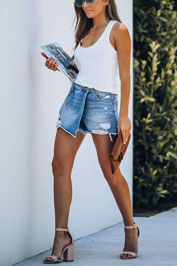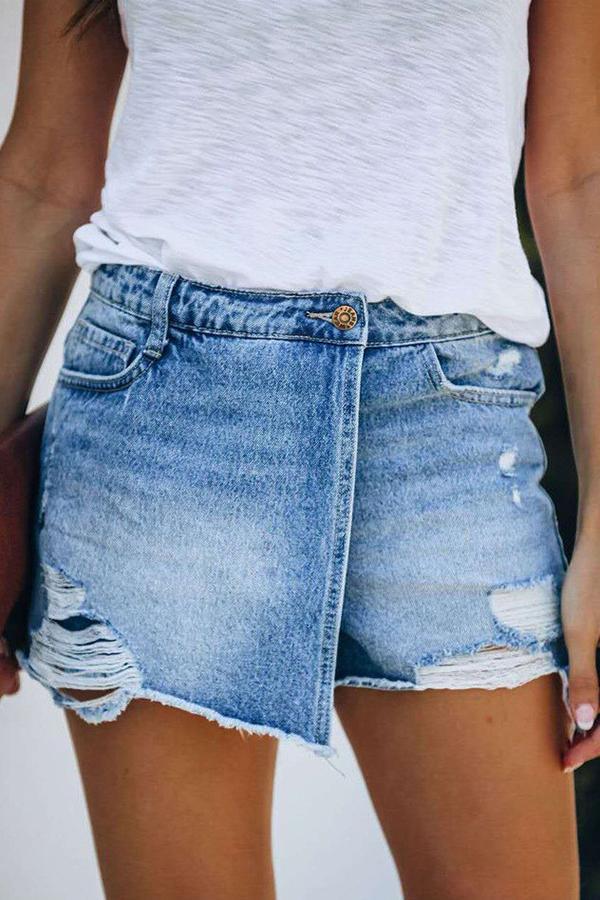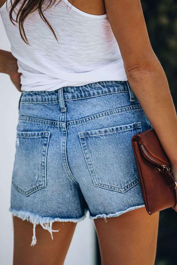 High Rise Distressed Denim Shorts