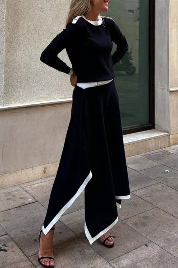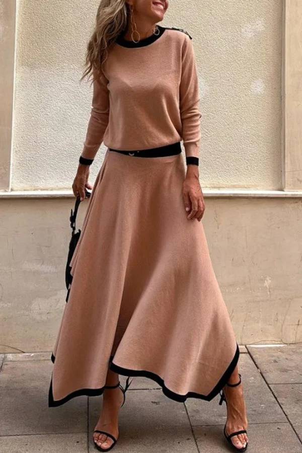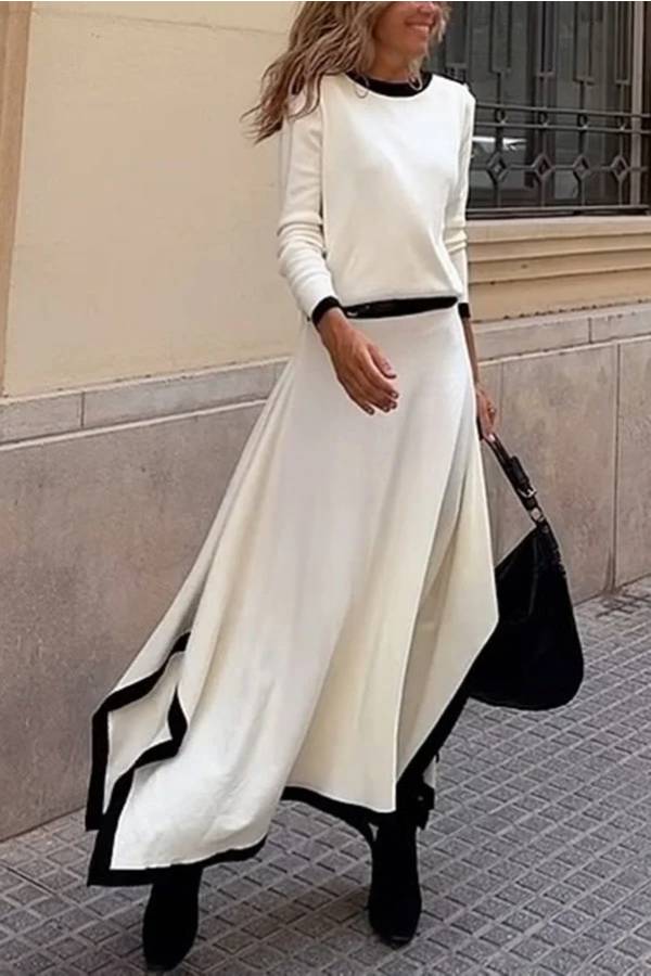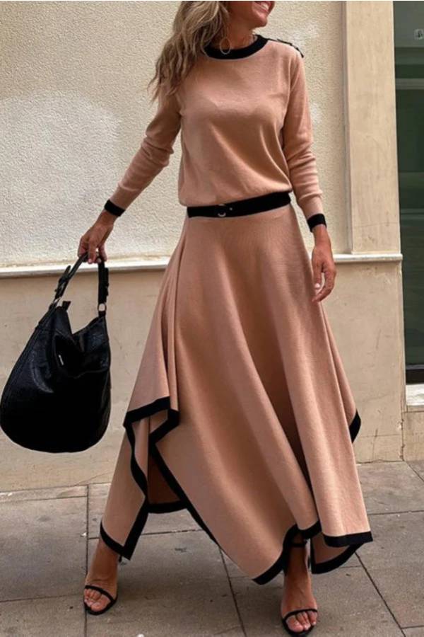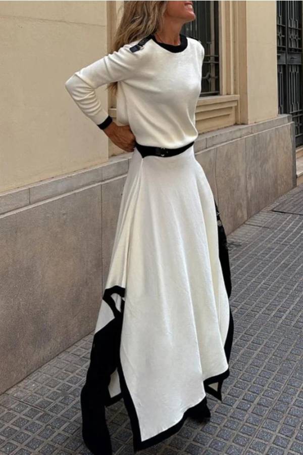Kadie Colorblock Elastic Waist Buckle Detail Irregular Hem Maxi Skirt