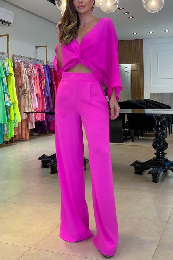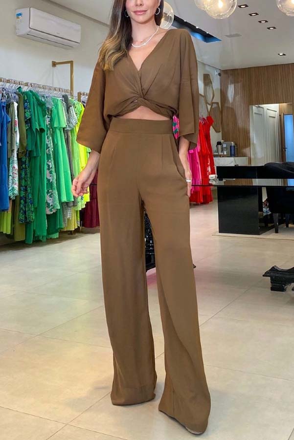 Laguna Resort Kink Shirt and Pocketed Wide Leg Pants Set with Cami Top