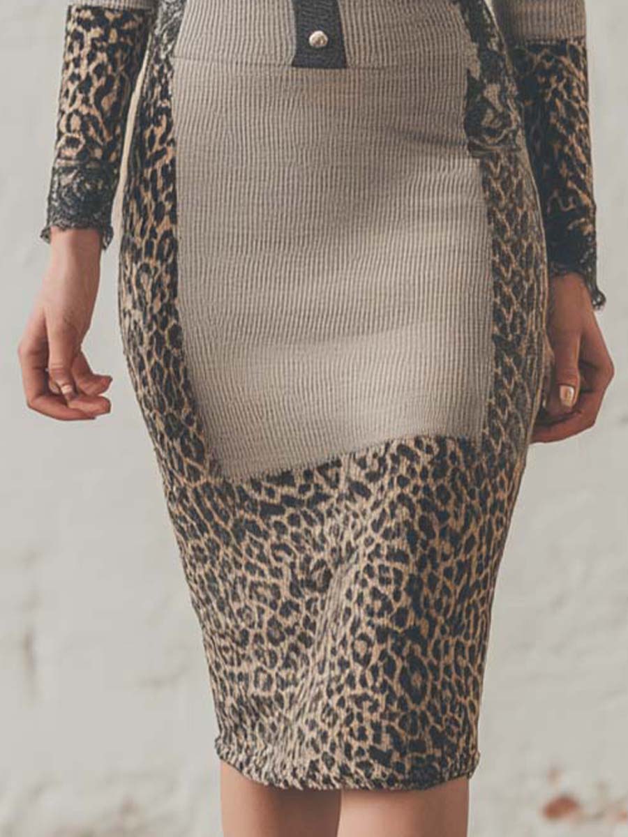 To elevate the Leopard Panel Ribbed Knit Bodycon Dress, pair it with sleek black stiletto heels and a clutch for a night out. For a more casual look, add ankle boots and a leather jacket. Accessorize with gold jewelry to complement the leopard print and enhance the overall look.
