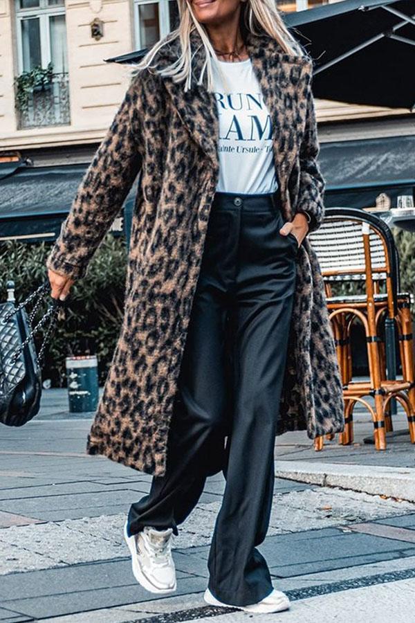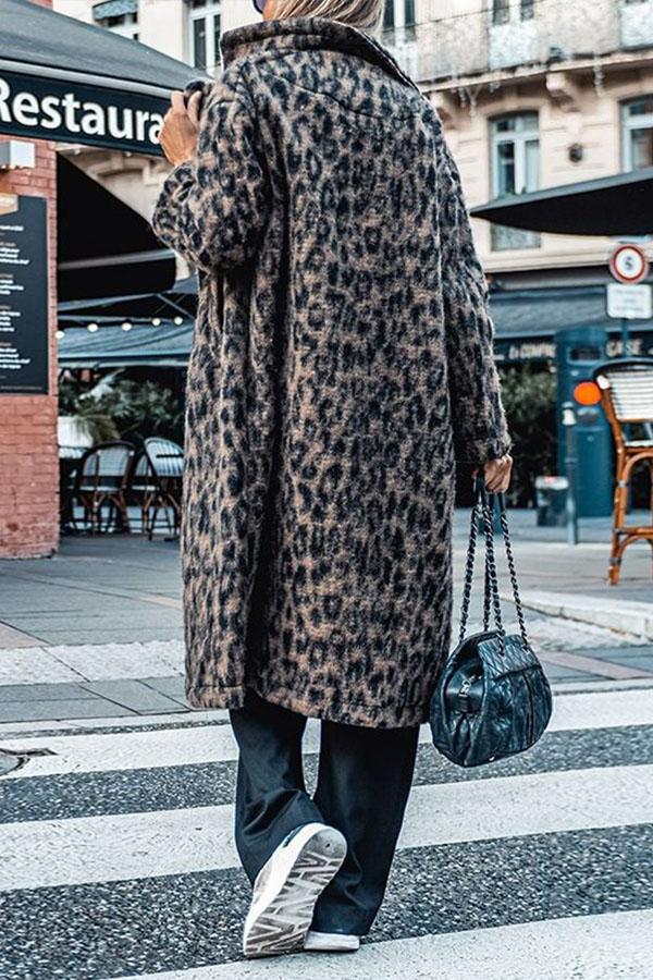 Leopard Printing Casual Lapel Coat
