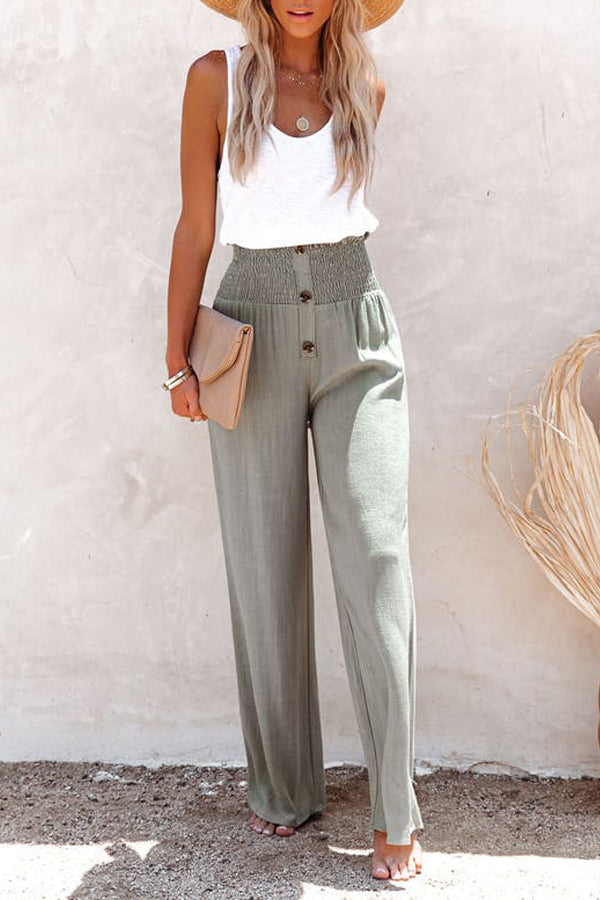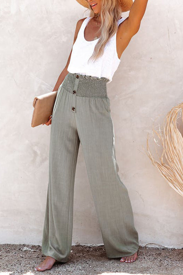 LINEN BLEND HIGH RISE SMOCKED PANTS