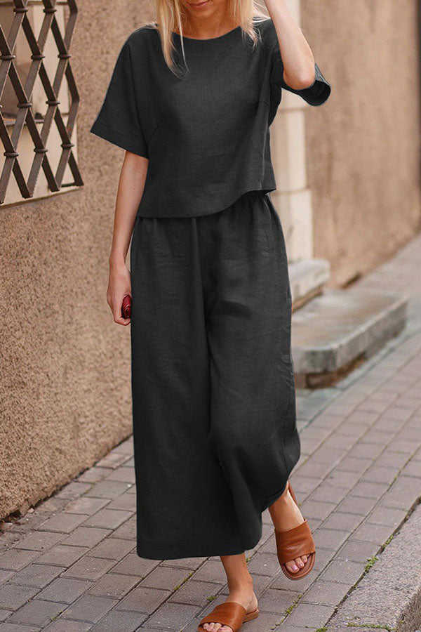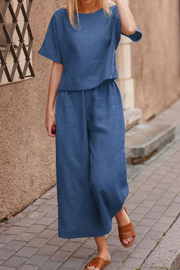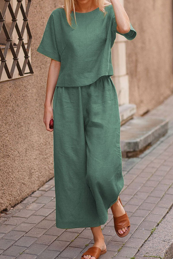 Linen Casual Loose Solid Color Suit Two Piece