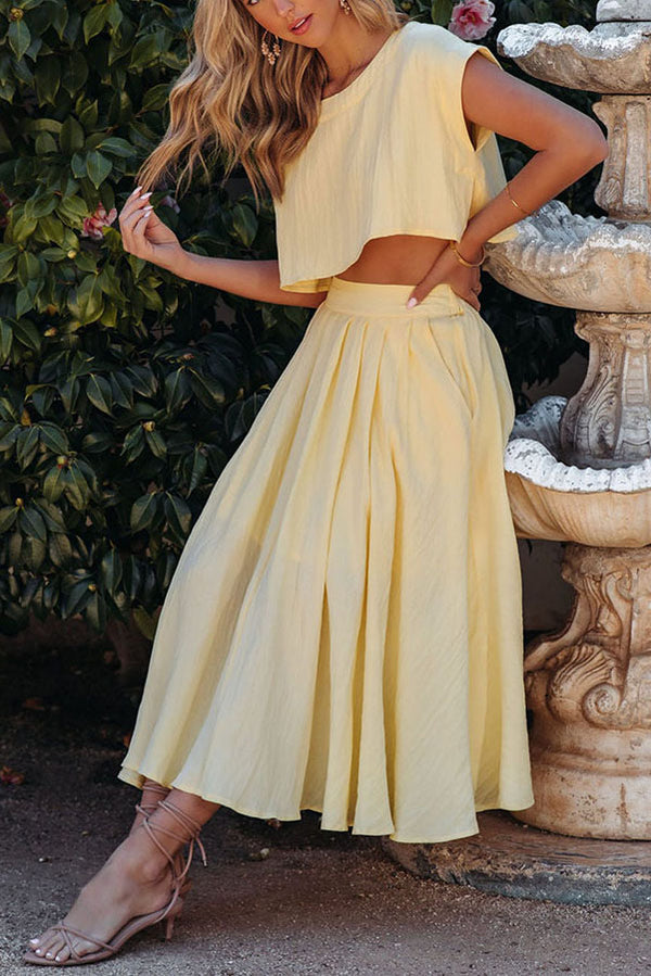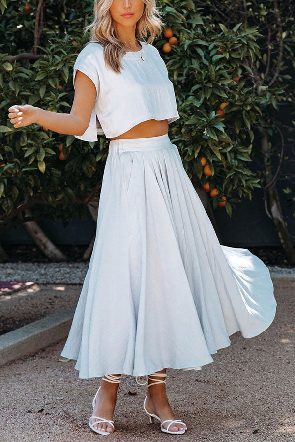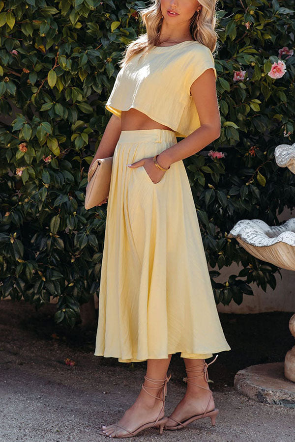 Linen Crop Top+ Pocketed Midi Skirt Suit