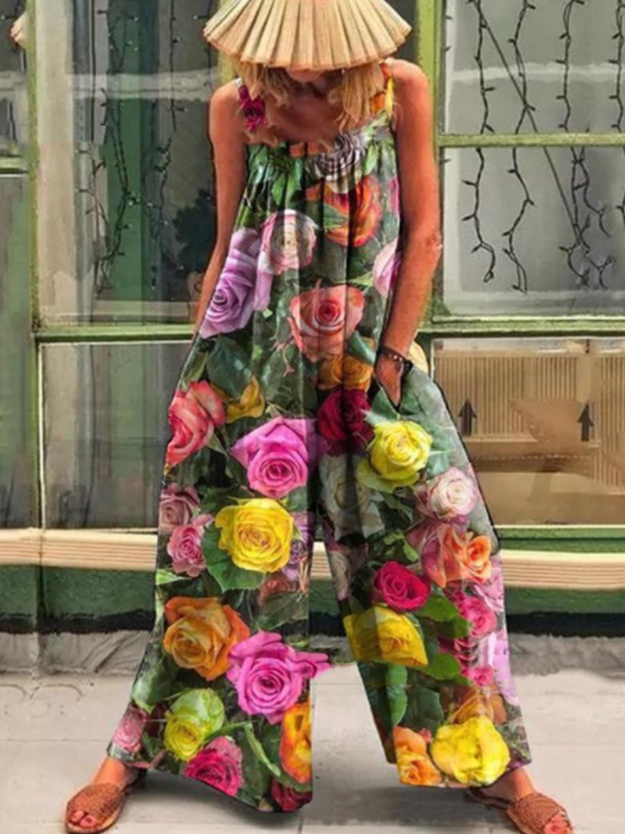 Loose Multicolor Sunny Flower Print Jumpsuit