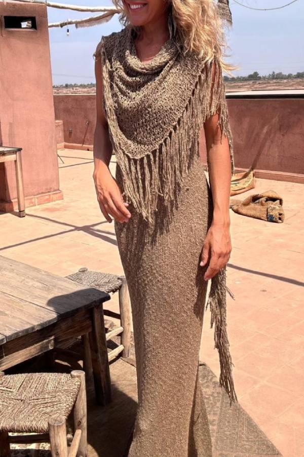 Openwork scarf with fringes、