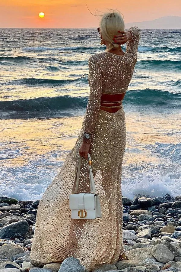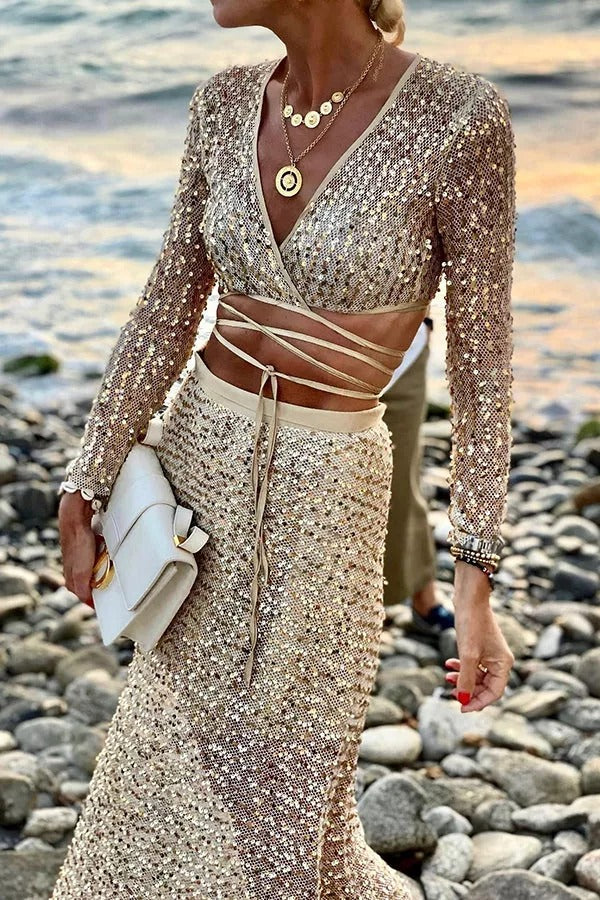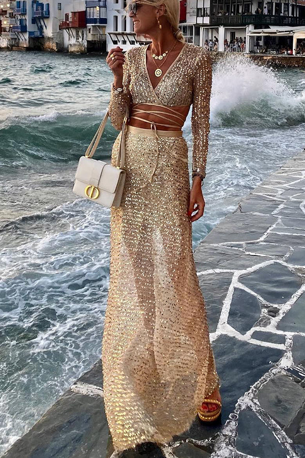 Mykonian Evenings Lace-up Sequins Dress Suits