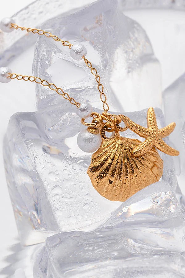 Ocean Series Pearl Accessories Starfish and Conch Shell Necklace