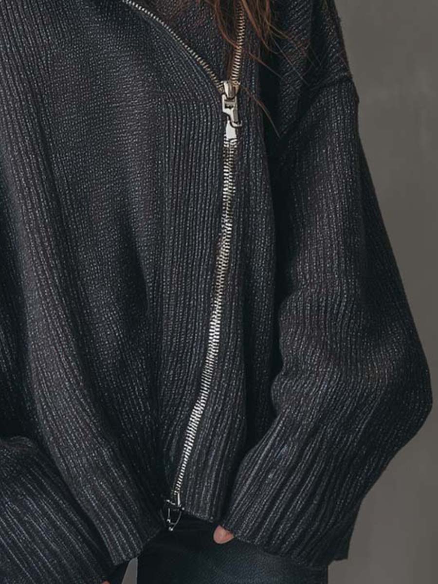 Unique Asymmetrical Zipper – Adds a bold, modern twist to a classic knit.