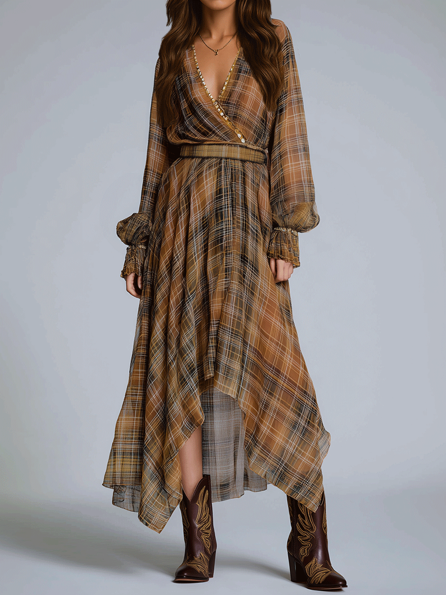 The Pastoral Romantic V-Neck Bohemian Style Chiffon Maxi Dress is a must-have in any fashion-forward wardrobe. Its harmonious combination of design, fabric, and style makes it a timeless piece, perfect for embracing your free spirit and showcasing your unique fashion sense.