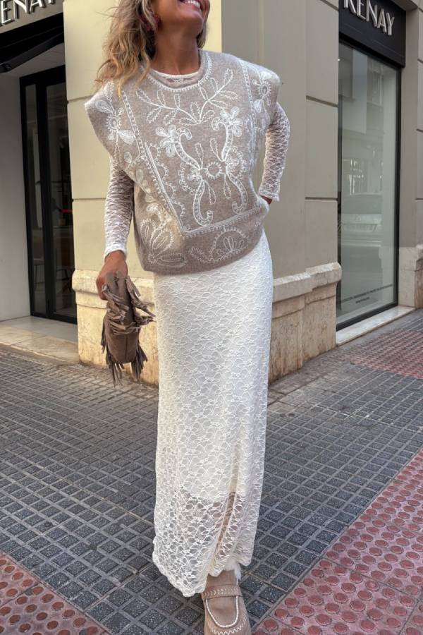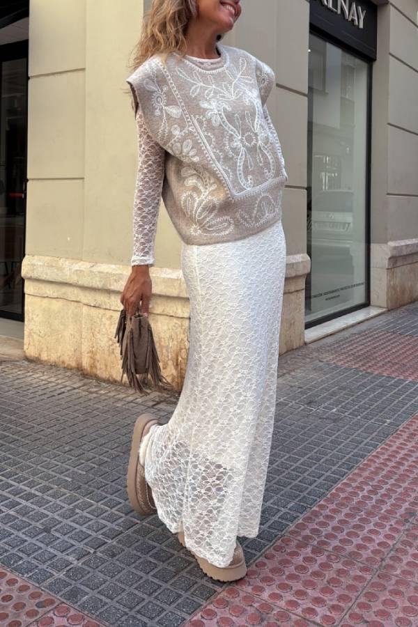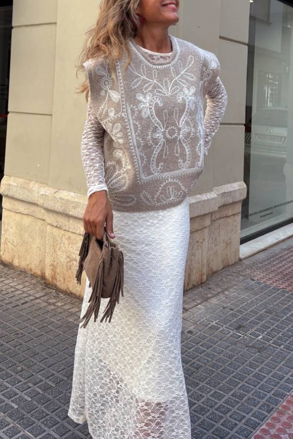 Knitted vest embroidered on the front