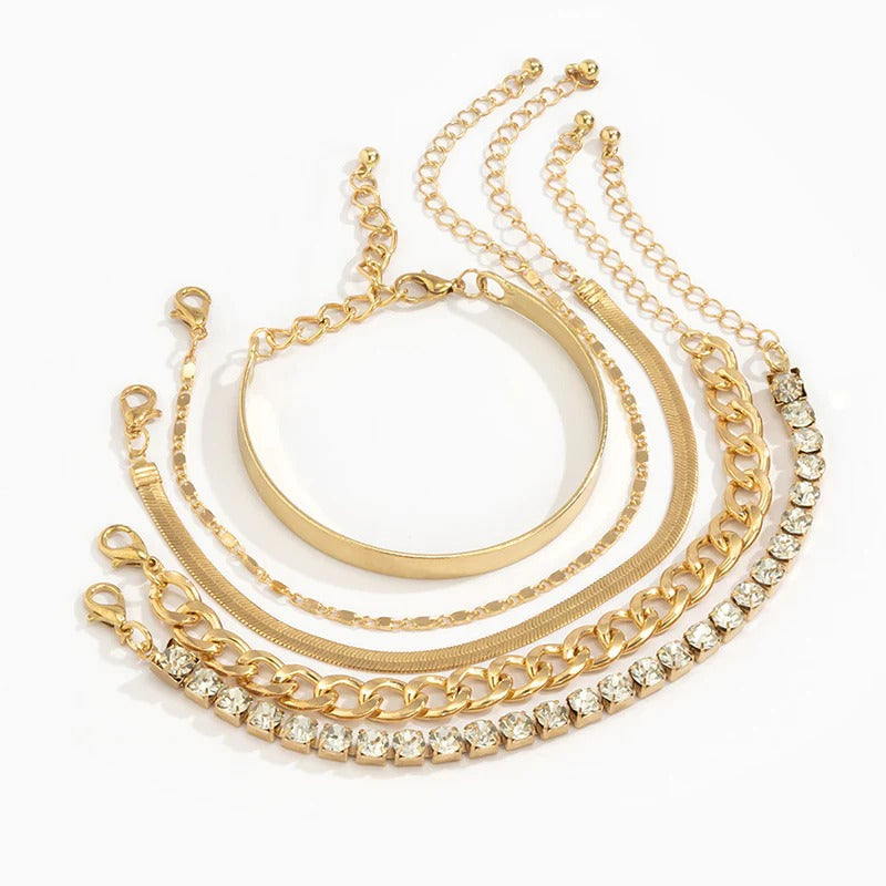 Personalized Geometric Multi-element Rhinestone Bracelet Set