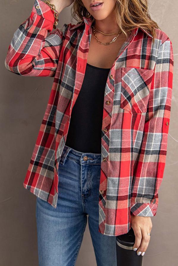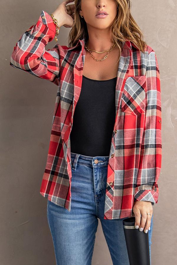 Plaid Button Blouse with Pocket
