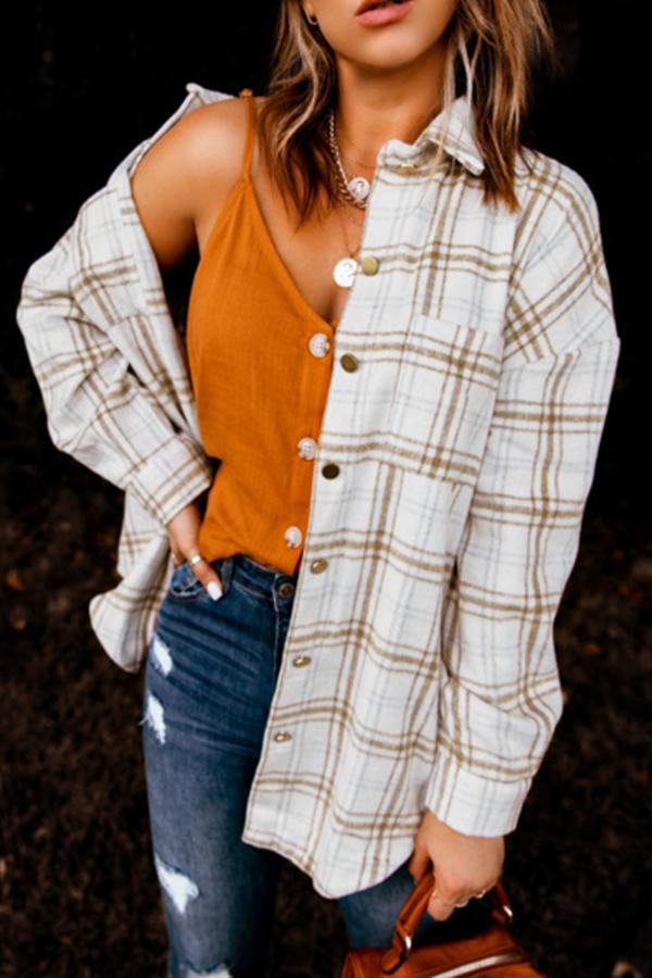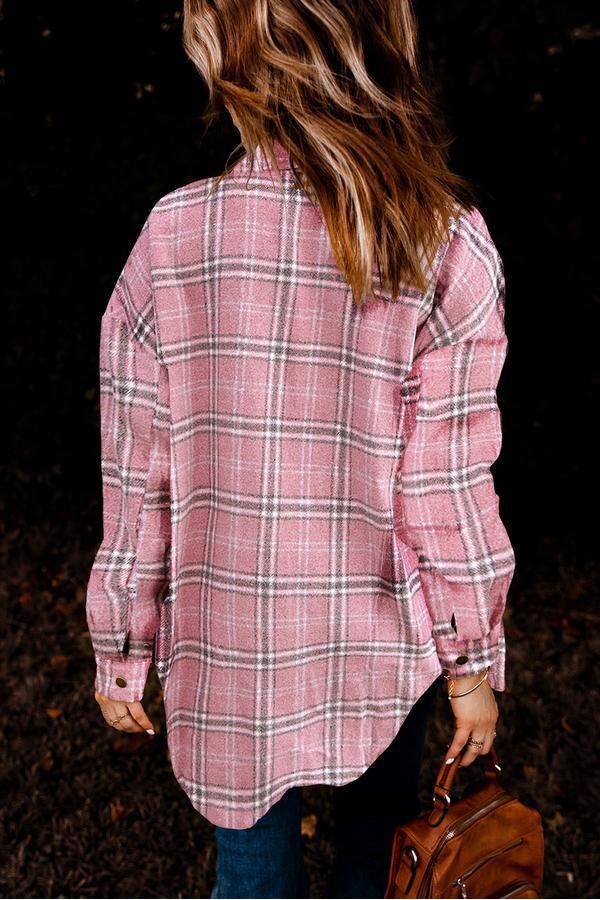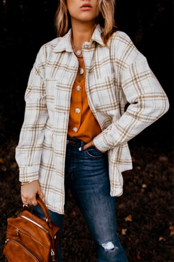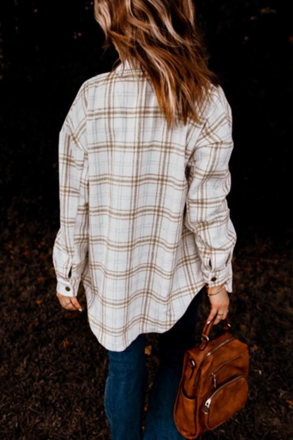 Plaid Pattern Buttoned Shirt Coat with Slits