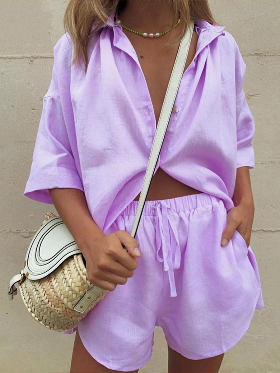 Pure Color Casual Two-piece Suit