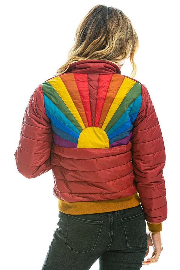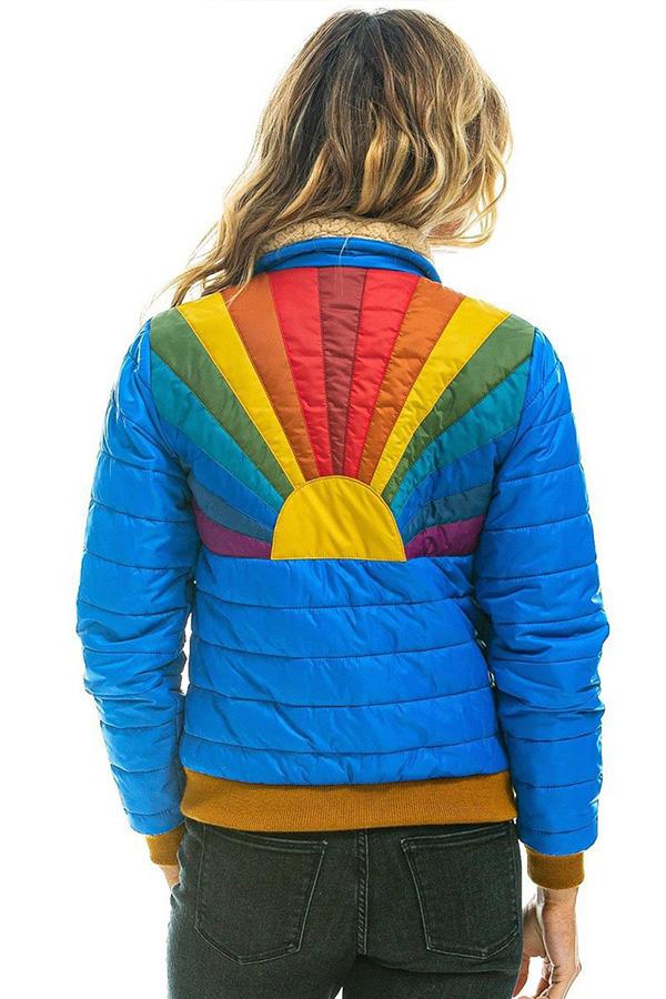 Rainbow Stripes Hit Color Fashionable Cotton Jacket