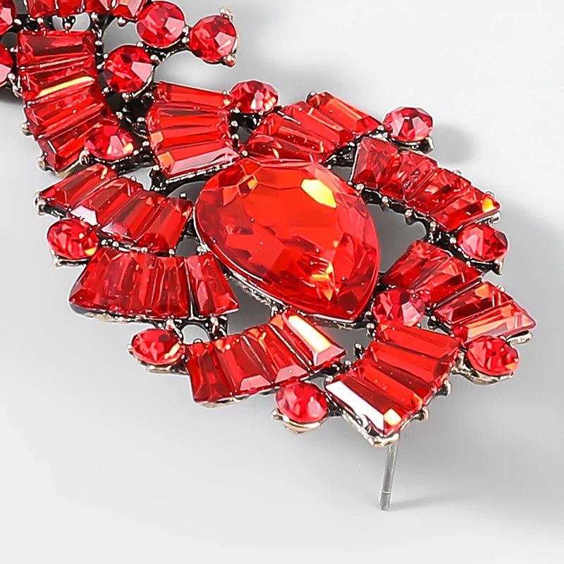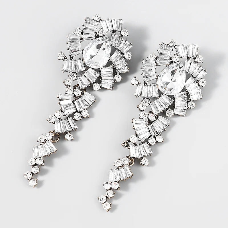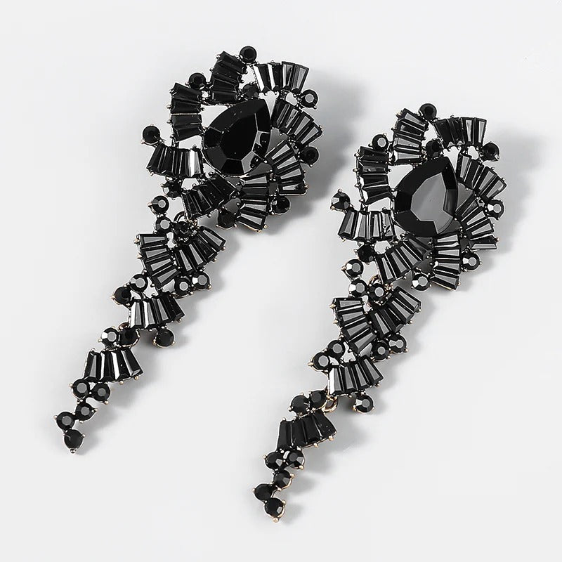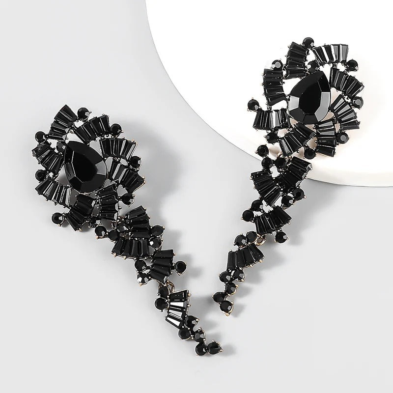 Retro Alloy Diamond Acrylic Flower Long Earrings