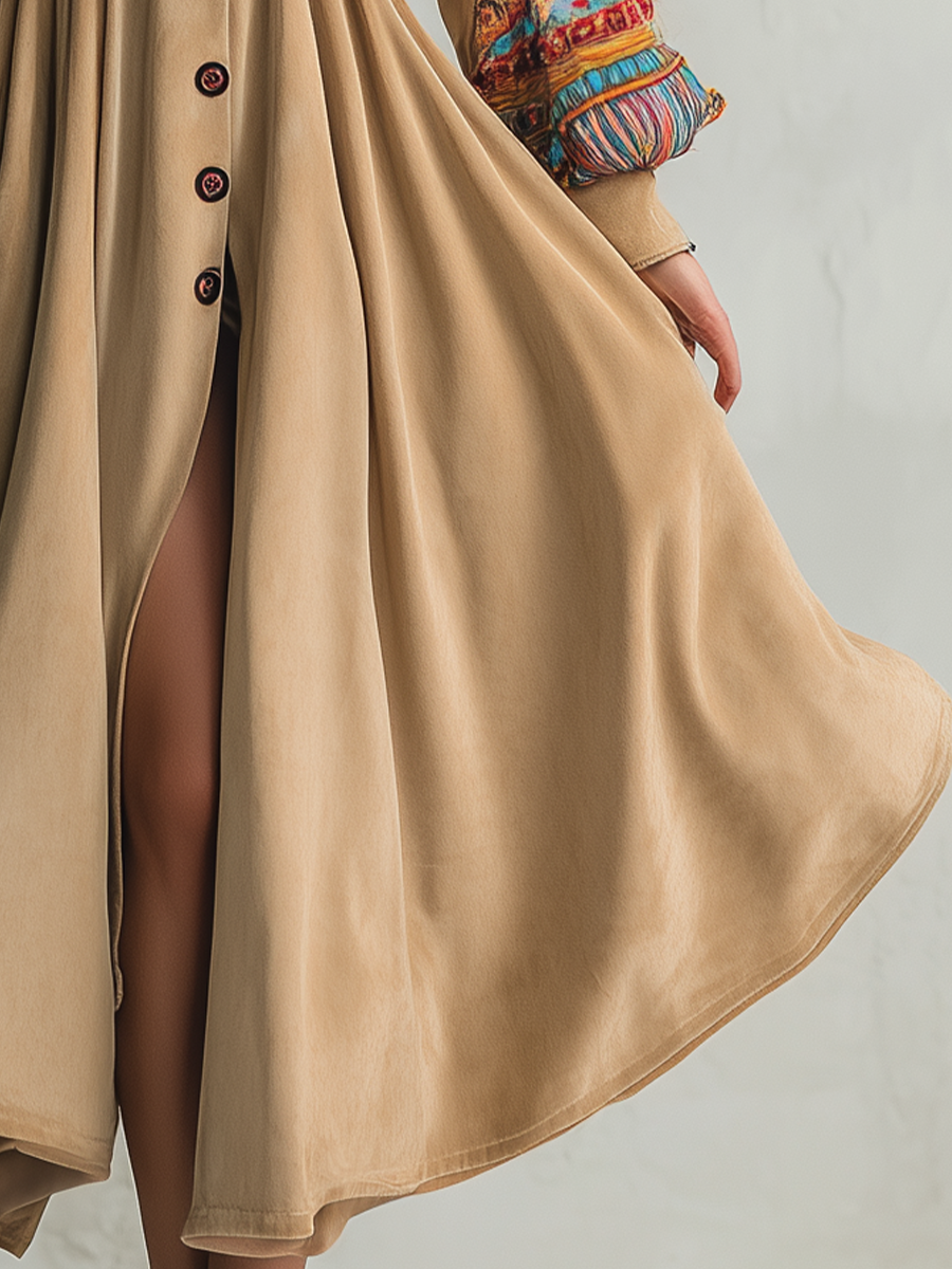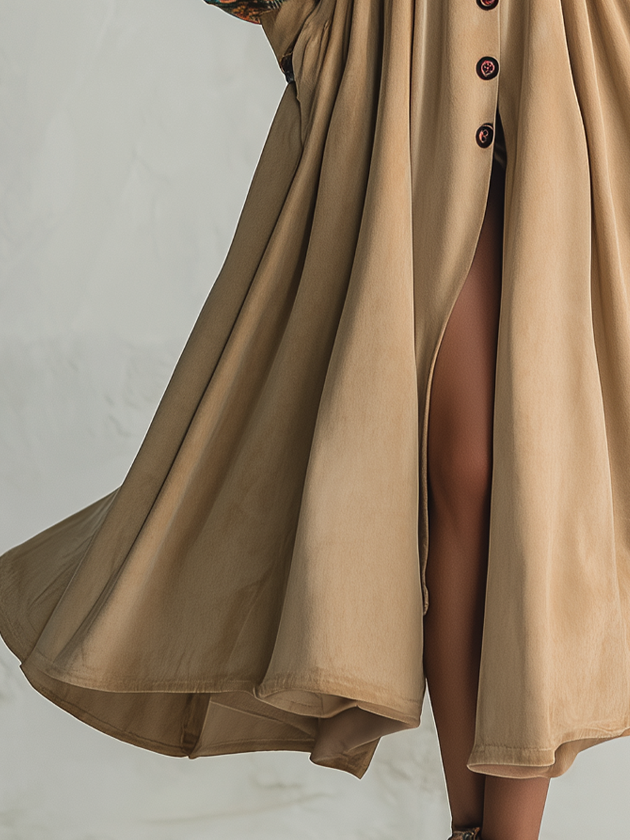 The Retro Bohemian Colorful Cuff Velvet Midi Dress is more than just an article of clothing; it's an expression of individuality and style. Whether dressing up for a special occasion or adding flair to your everyday ensemble, this dress is sure to elevate your wardrobe with its unique design and luxurious fabric.