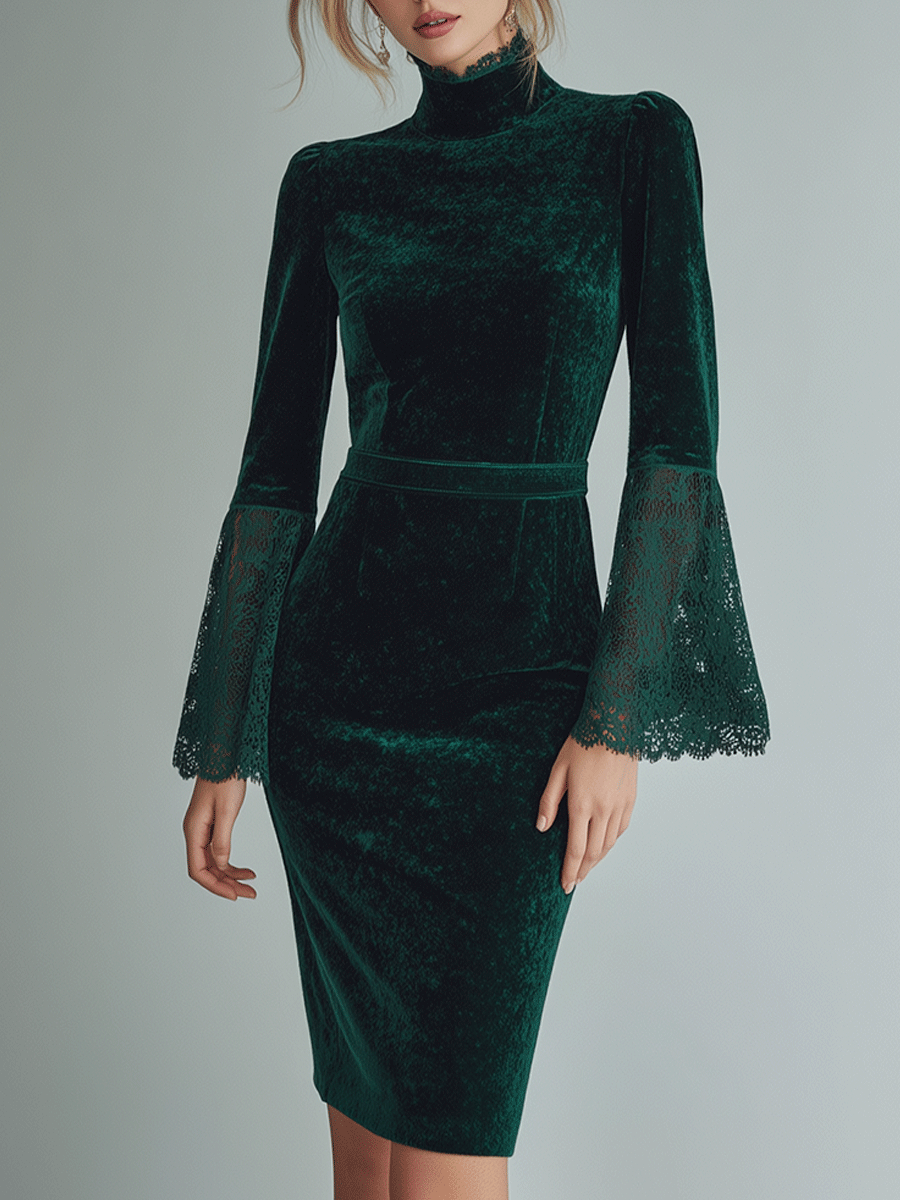 The Retro Chic Elegant Emerald Green Lace Flared Sleeves Velvet Midi Dress is a perfect choice for those looking to combine vintage allure with contemporary elegance. Its rich color, luxurious fabric, and thoughtful design details make it suitable for various occasions, offering endless styling possibilities.