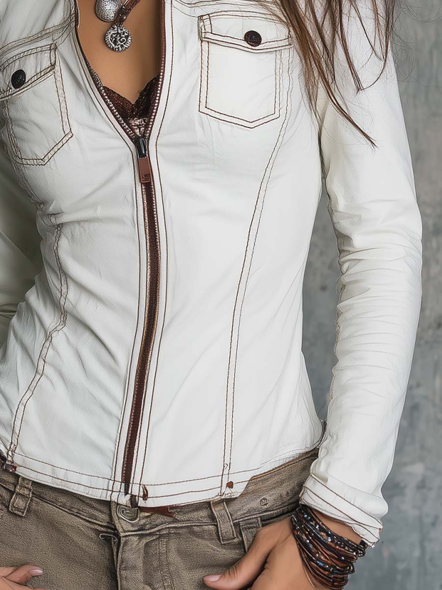 Combine tradition with modern flair with this Retro Color-blocked Zipper Pocket Long-sleeved Denim Blouse. Its creative design and practical features make it a must-have forFutario fashion-forward individuals seeking to make a statement. Enjoy the blend of retro and new-age style in this versatile piece.