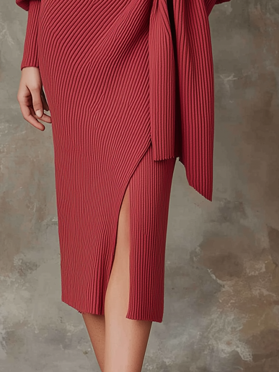 Retro Cross-neck Knitted Wrap Mid-length Dress