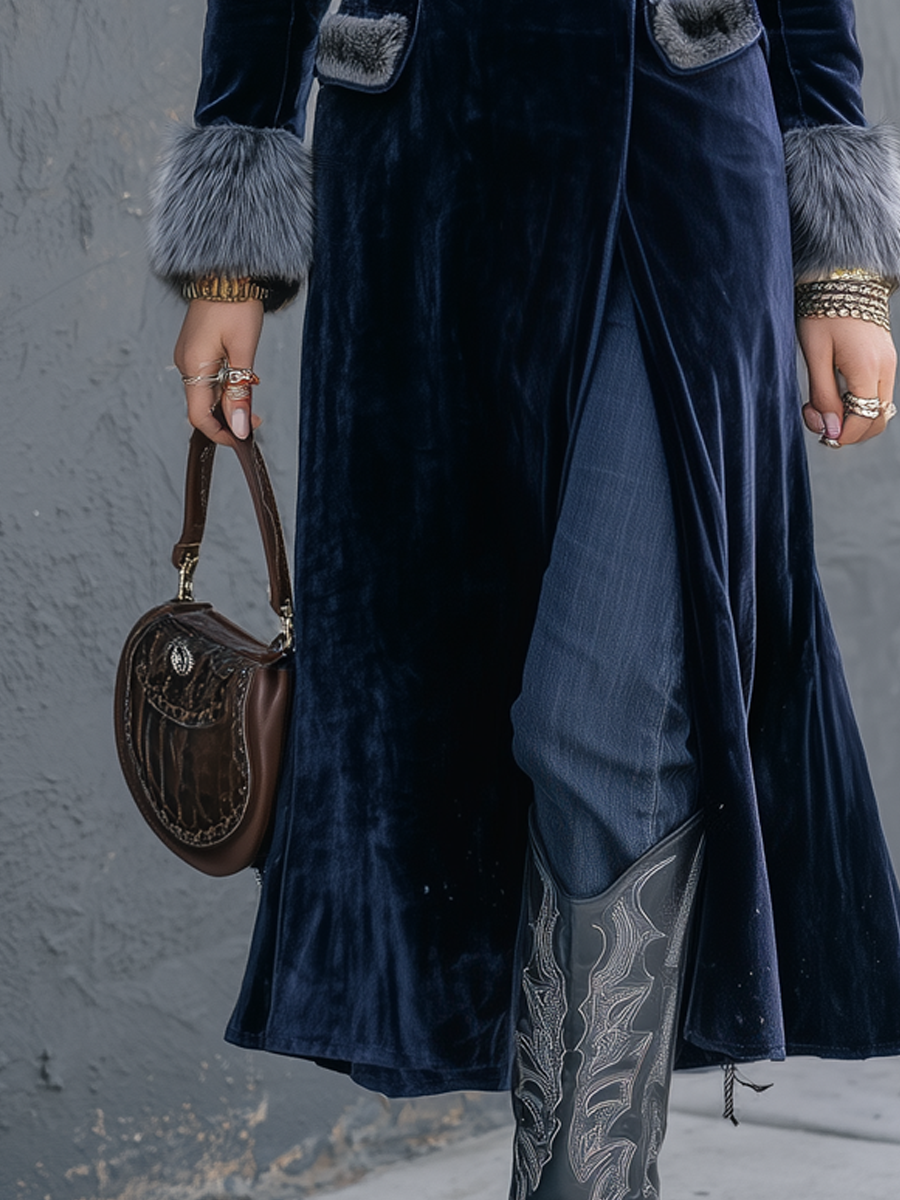 This Retro Eco-friendly Fur Collar Velvet Coat is a sophisticated blend of vintage style and sustainable design. Crafted with eco-friendly materials, the luxurious velvet texture offers a plush feel, while the elegant fur collar adds a touch of timeless glamour.