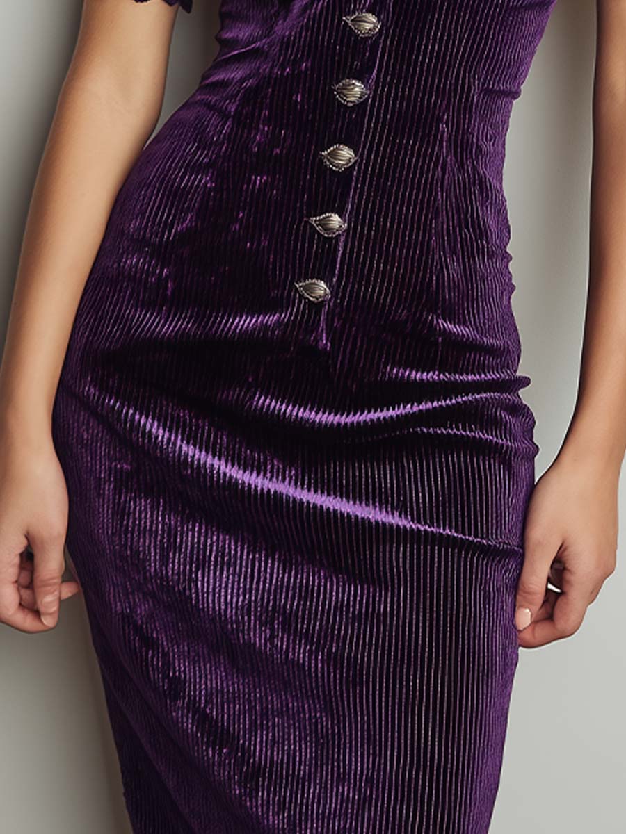 With its timeless design and luxurious fabric, the Retro Elegant Purple Striped Velvet Slim Midi Dress is an essential addition to any wardrobe. Perfect for those who appreciate a blend of vintage elegance and modern style, this dress promises to make you feel confident and chic, no matter the occasion.