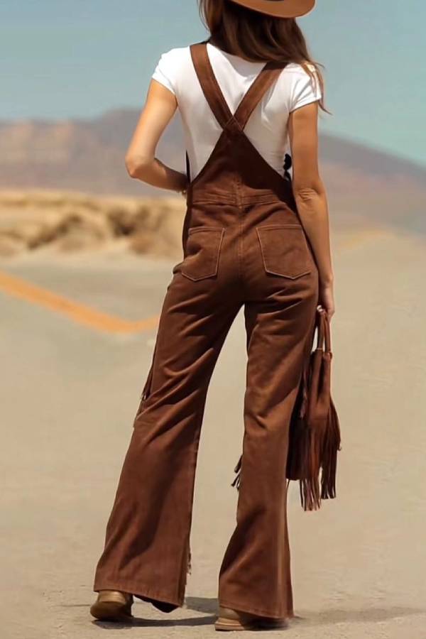 Retro Faux Suede Flared Overalls