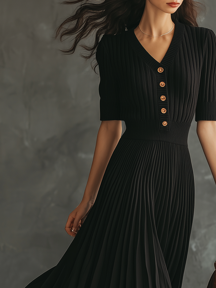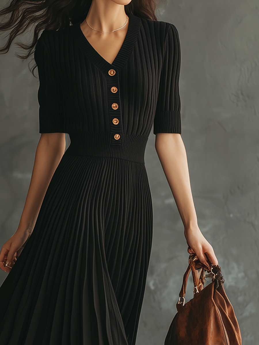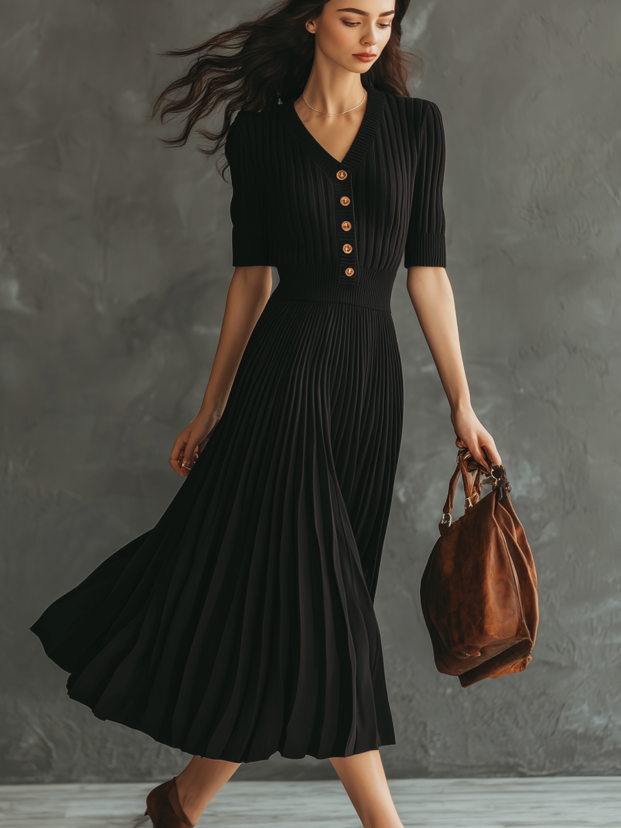 The Retro Half Sleeves Pleated Knitted Maxi Dress is your go-to garment for any occasion that demands a blend of grace and style. Its timeless design and versatile styling options make it an essential addition to any wardrobe, ensuring you always step out in confidence and class.