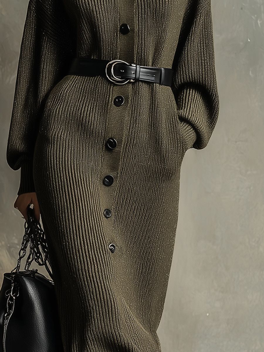 The Retro High-neck Contrast Buttons Knitted Midi Dress is the perfect addition to any wardrobe looking for a classic, elegant, and versatile piece. Its unique features allow you to style it for various occasions, ensuring you look polished and chic at all times.