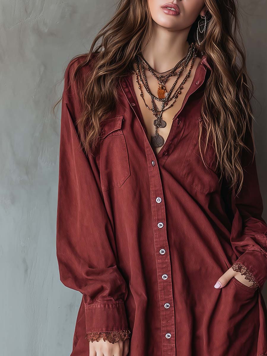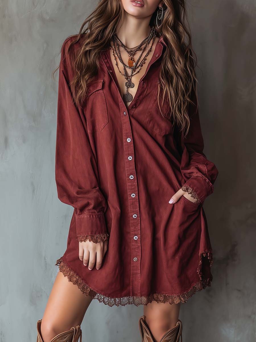 This Retro Oversized Denim Mini Dress with a Lace Hem exudes vintage charm and contemporary flair. Its oversized silhouette creates a relaxed yet stylish look, making it a versatile piece for any wardrobe. The denim fabric provides durability and a classic appeal, while the delicate lace hem adds a feminine touch that elevates the overall design.