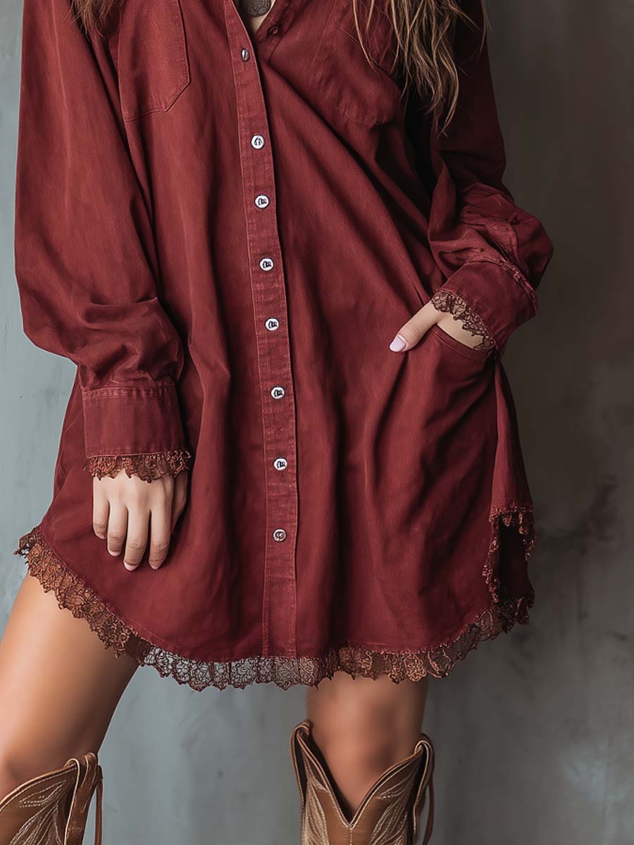 This Retro Oversized Denim Mini Dress with Lace Hem is a perfect blend of classic and contemporary style. Its durable denim fabric, combined with the charming lace detailing, makes it a standout piece that can be effortlessly styled for both casual and semi-formal occasions.