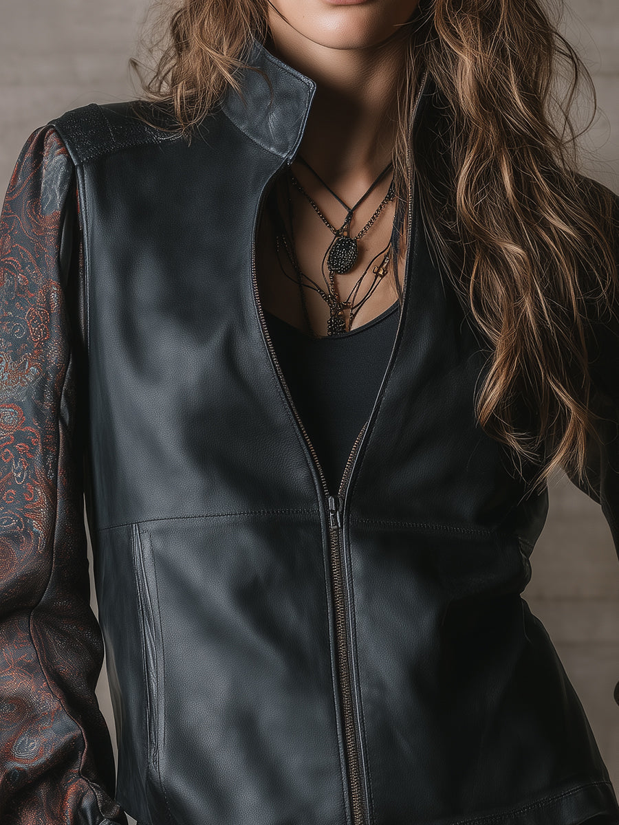 Retro Paisley Pattern Eco-friendly PU Splicing Jacket