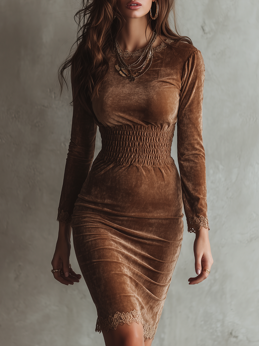 The Retro Pleated Waist Lace Trim Bodycon Dress is a timeless piece that brings a touch of vintage allure to any wardrobe. Its versatile design makes it easy to style for various occasions, ensuring you always look effortlessly chic and sophisticated.