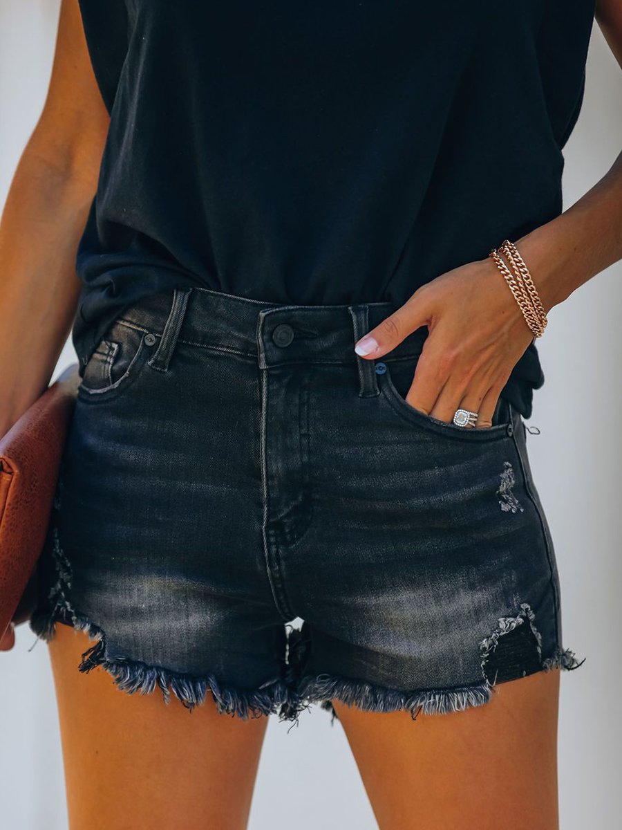 Retro Ripped Raw Edge Denim Shorts