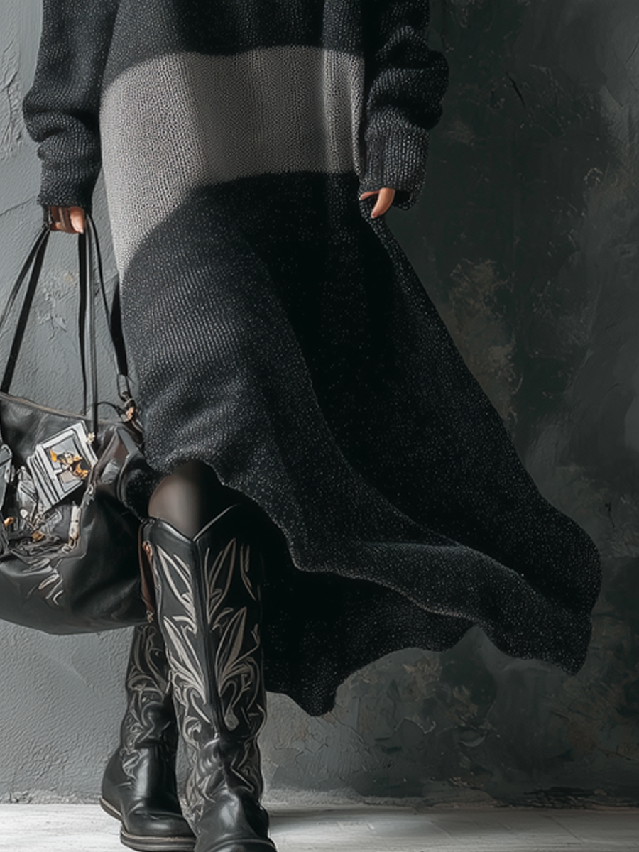 Combining retro aesthetics with modern elegance, the Retro Round Neck Contrast Color Knitted Midi Dress is a versatile addition to any wardrobe. Its unique design elements and timeless appeal make it a must-have for those looking to make a bold fashion statement with ease and grace.