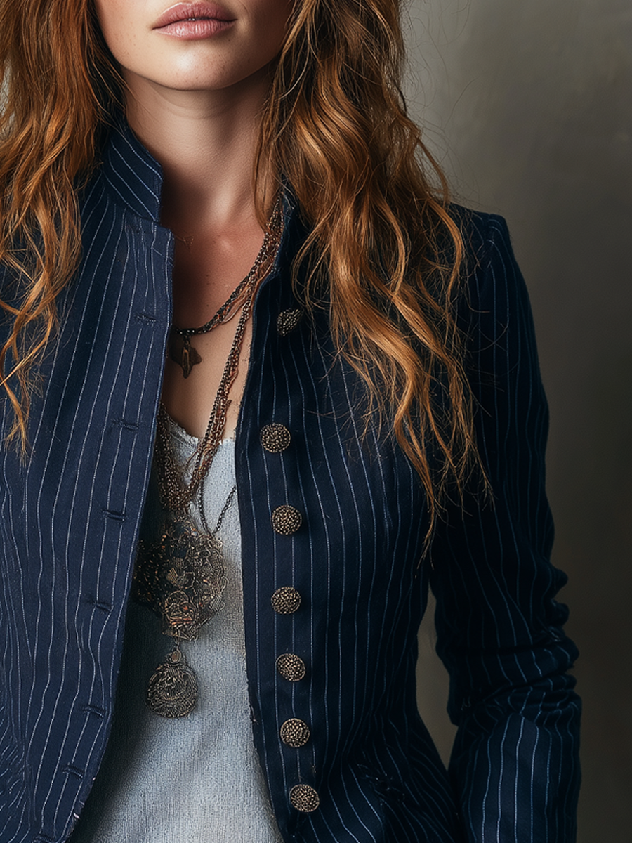 This Retro Stand Collar Striped Long Sleeve Jacket is designed to blend classic style with modern elegance. Featuring a timeless stand collar and distinctive stripes, it is a perfect addition to any wardrobe seeking a hint of retro flair. Crafted with attention to detail, the jacket promises both comfort and style.