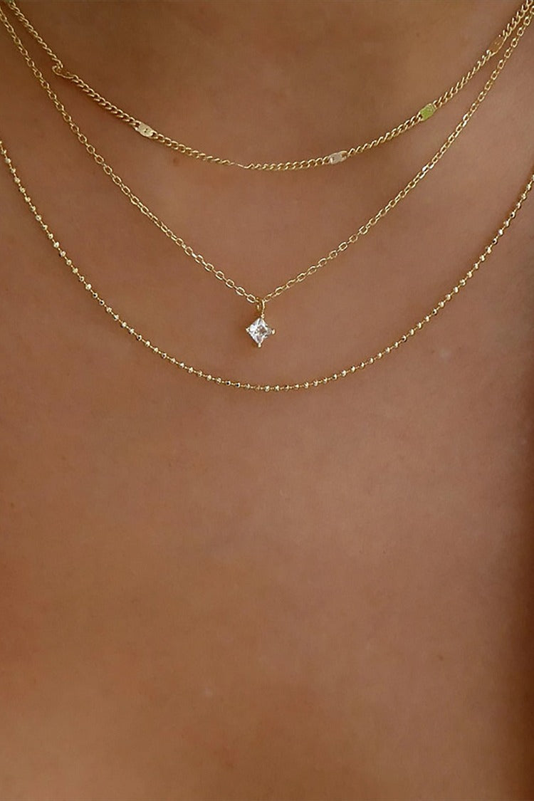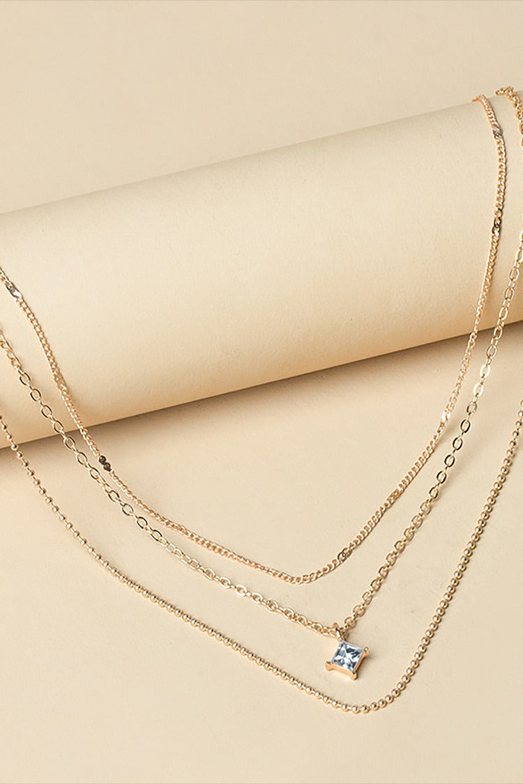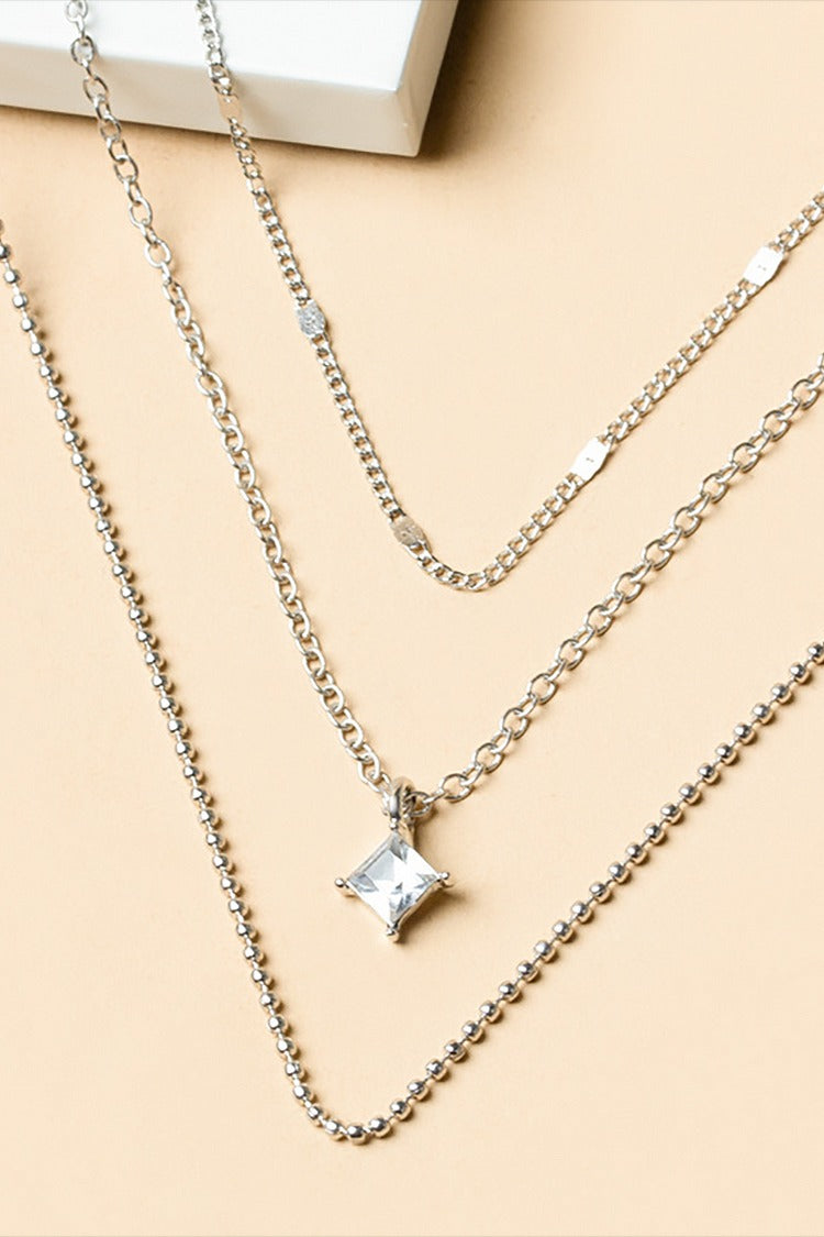 Rhinestone Pendant Layered Chains Alloy Chic Necklace