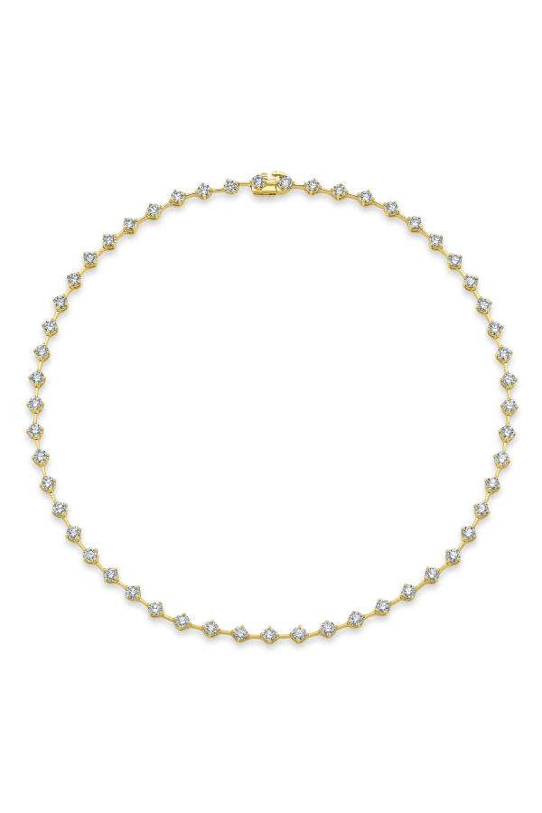 Round Brilliant Diamonds in 18k Yellow Gold Bar Necklace