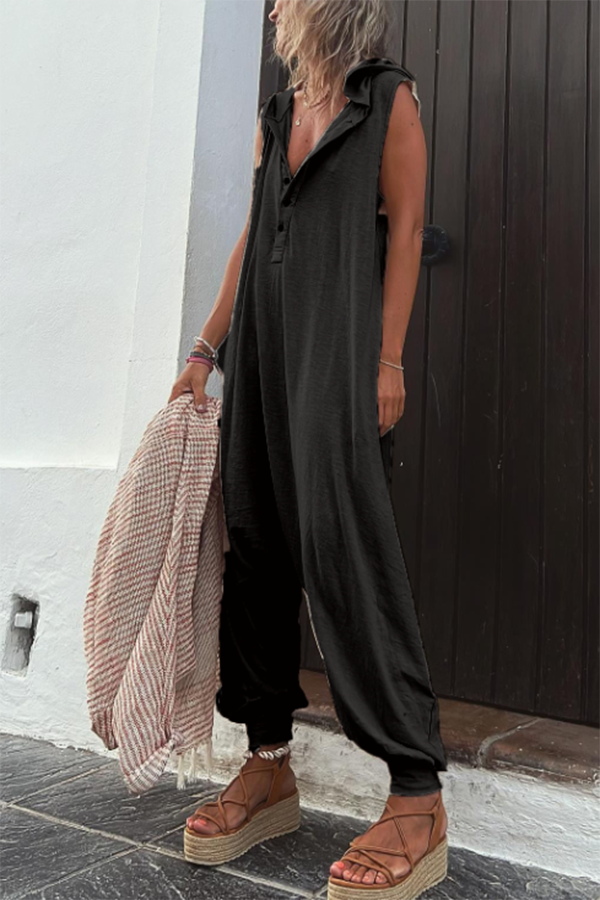 Ryker Pocketed Half Button Hooded Jumpsuit